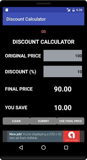 This is a very simple discount calculator app to help you calculate things during your sales shopping!