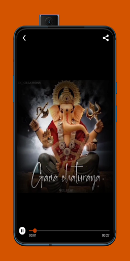 The application Lord Ganesha(Ganpati) Video Status contains Lord Ganesha Shlok, Ganpati Stuti, Ganesha Mantra, Ganesha Aarti video, Ganesha Video, Lord Ganesha Full Video Status & Ganpati HD Video Status.