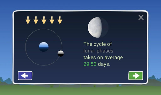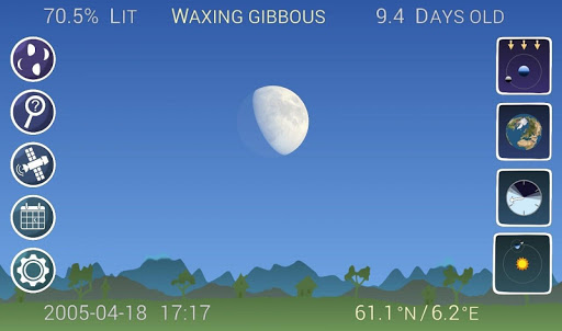 LUNA provides a close approximation to the correct lunar phase and position at any given time and place on Earth. It estimates what the Moon will look like. It is not meant to be a precise lunar phase calendar (you will find many other apps for that functionality). LUNA is much more. It will help you to develop and increase your understanding of lunar phases, of why the moon can appear “upside down” in another part of the world, or tilted another way at different times of day or night. LUNA also lets you discover a number of interesting facts about the Moon and about past and future missions to the Moon. If you are interested in astronomy and want to try a fascinating app which may give you more insight into the Moon, try LUNA. Experiment, observe and learn!