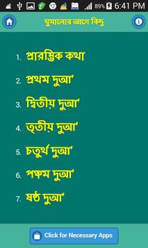 1. প্রারম্ভিক কথা 2. প্রথম দুআ’ 3. দ্বিতীয় দুআ’ 4. তৃতীয় দুআ’ 5. চতুর্থ দুআ’ 6. পঞ্চম দুআ’ 7. ষষ্ঠ দুআ’