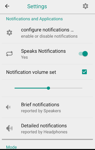 You can also choose the audio mode where they will be spoken (headset, speakers, always or none) for short or detailed notifications.