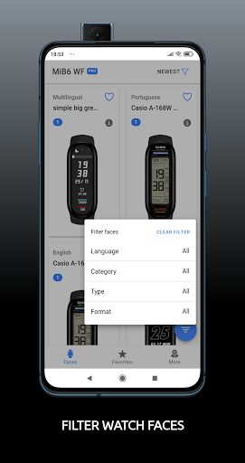 - Multi-language support. We upload the Mi band 6 watch faces available in different languages.