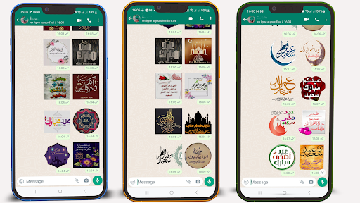 Eid Al-Fitr stickers for WhatsApp also contains congratulations for the Islamic New Year, eid al adha wishes.