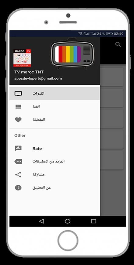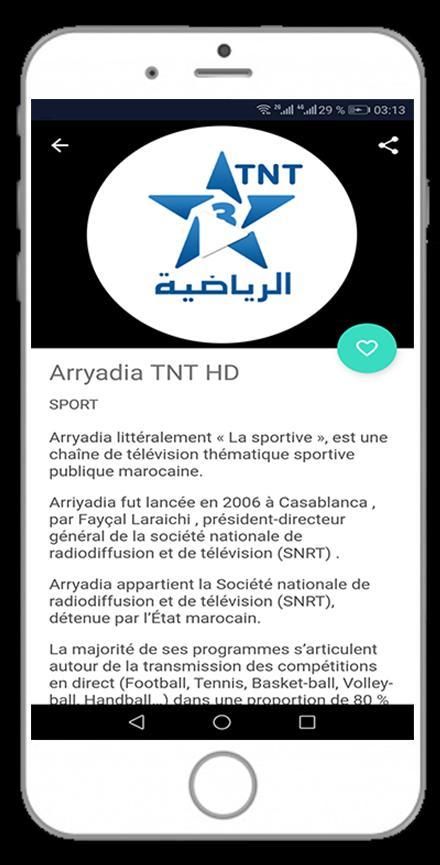 قنوات مغربية TV maroc TNT is an application published by Future Software Equipe, It offers livestreaming of 9 TV channels It is available on Smartphones, tablets and on SmartTV.