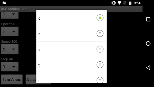This application is an upgrade to BLE for the original Bluetooth RC Car application. A couple of other features have been added. You can now change the character assigned to each button. You can also control the car's speed with the accelerometer control feature, which now can have its maximum and minimum thresholds trimmed. You can find the code and circuits at the tutorial website https://sites.google.com/site/bluetoothrccar/.