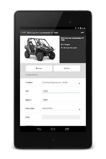 Complete inventory control. Use ARI Mobile to fill in missing details like photos, colors, stock numbers and more to drive more leads through your online inventory. Use pre-defined workflows and smart filters to quickly find and enhance incomplete inventory listings.