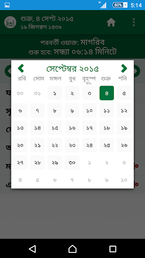 - See prayer times. Today's time is shown by default. You can search for prayer time any day of any year.