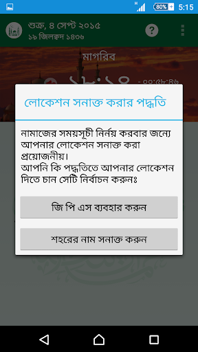 - Location based prayer time. This app try to show the most appropriate time for your location. You can change this behavior by selecting location manually or changing the time.