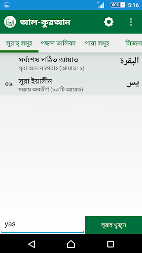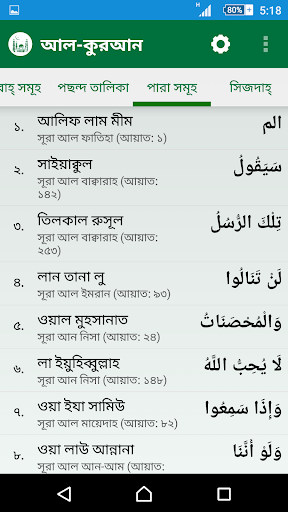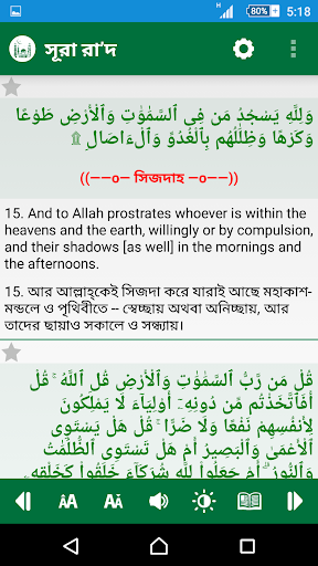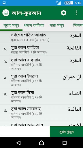 - আল-কুর'আনের ১১৪ টি সূরা সম্পূর্ণ (ইংরেজি ও বাংলা অনুবাদসহ)