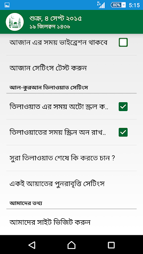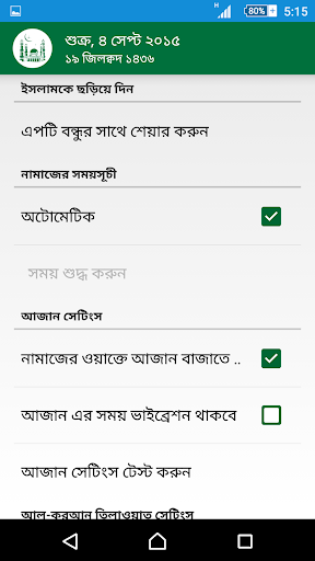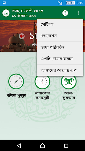- নামাজের সময় অনুযায়ী এলার্ম দেওয়ার ব্যবস্থা। এলার্ম হিসাবে সুমধুর আজান শোনার ব্যবস্থা।