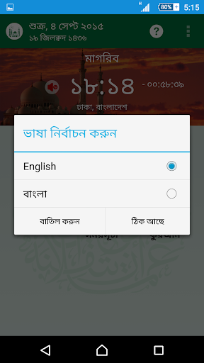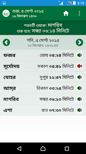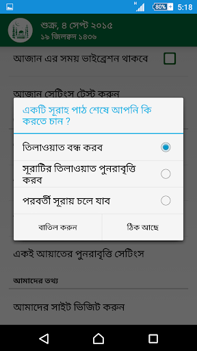 - Set alarm at any prayer time. You can select alarm types between beep only or Adhan.