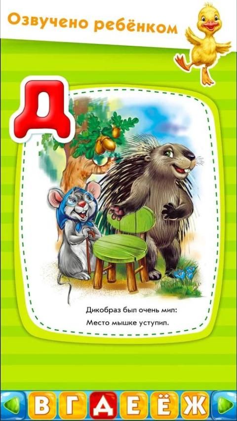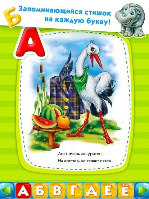 Electronic alphabet for children - 33 poems in all the letters of the alphabet, voiced child, and funny pictures to them.