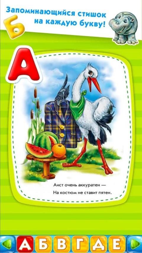 Colorful alphabet, funny poems educational, exciting, but useful mini-games and children's puzzles will not leave indifferent your child and help him learn to read or learn the alphabet. We really wanted to make an application for the youngest children, through which children will be happy to learn letters and mother - less nervous, so the application Learning letters have everything that you need to like kids and mums: