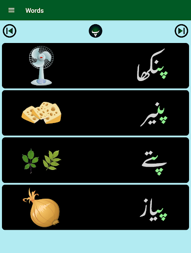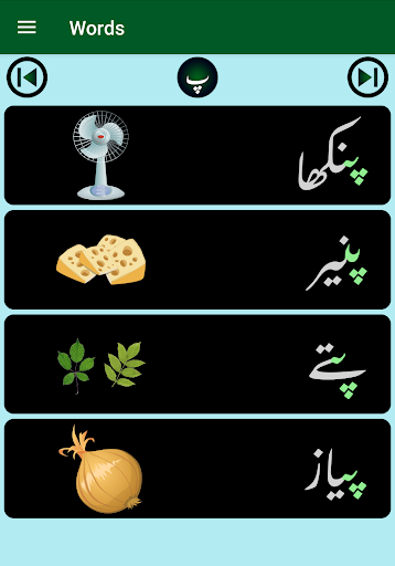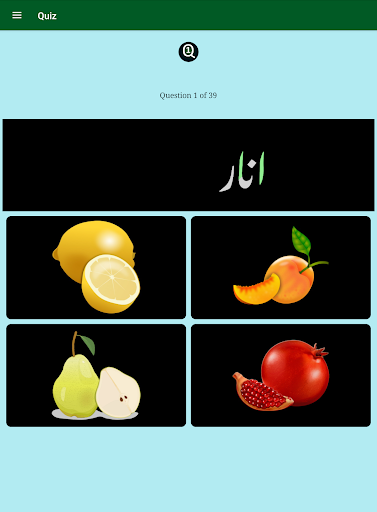 3. Four quizzes (156 questions) to match Urdu words with the correct image.