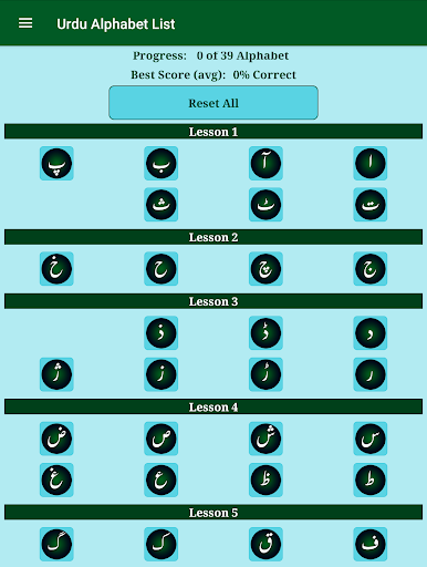 1. This Application has a complete list of Urdu alphabet with pronunciation audio.