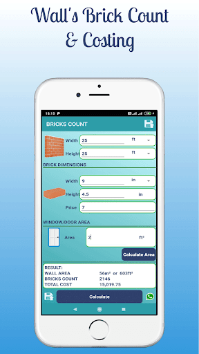 Concrete calculator – helps you to calculate slab, steps, column and footing type of concrete volume, mixer, and weight and costing. It also helps you to find out brick’s quantity and cost in a wall.