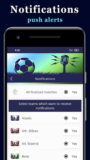 ◾️ Receive PUSH notifications 📣 of the start, half-time, end of the game and goals.