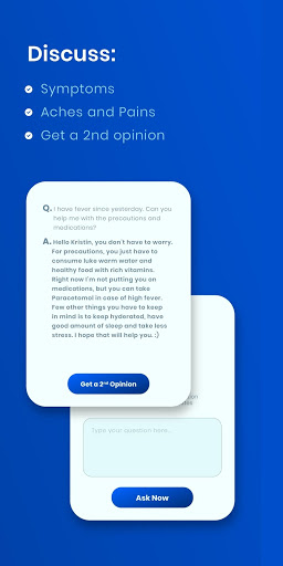 Get on the spot answers to your pressing medical questions in a few clicks or even chat with a doctor on any medical topic. We’ll direct you to the suitable specialist to address your concerns in just a few minutes. Just write down your specific condition or request, and let the Ask a Doctor app do the rest…