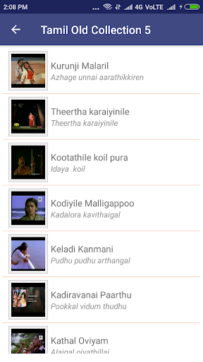 Welcome to Android App for latest collection of Tamil Old Songs Video. This application contains large collection of Old Tamil Songs. This application is especially for those music fans who love to listen only old music.