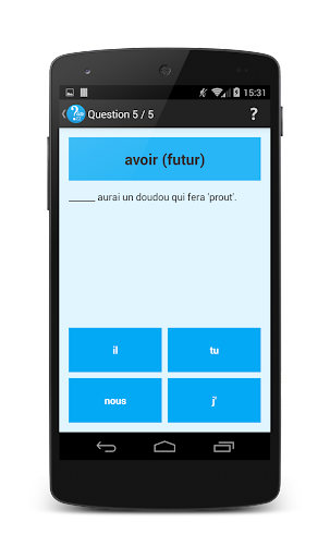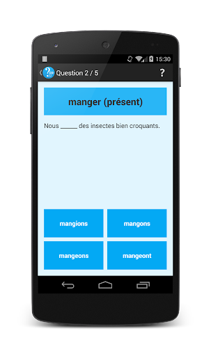 ConjuQuizz génère des quizz de conjugaison en piochant des questions dans une base de données de plus de 7'000 enregistrements, en fonction des réglages de l'utilisateur.