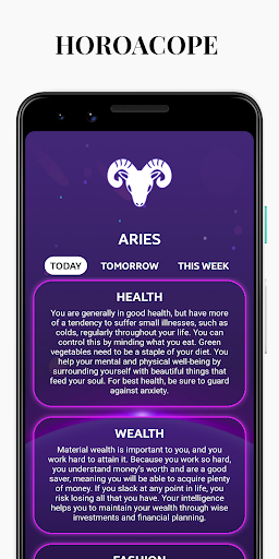 Easy to Use : If you're a lover of reading the daily horoscope, then this free app should are available handy because it is straightforward and straightforward to use. Your interest in astrology can range from a daily glance at the daily prediction section within the newspaper or as a suggestion for various areas associated with marriage, business or maybe health. This daily horoscope app delivers to your Android devices not only today’s prediction but predictions also for yesterday and tomorrow for all the zodiac signs. Daily horoscope prediction provides you with an summary and is split into love, career, health and finance also . you'll even check your love compatibility supported your zodiac signs.