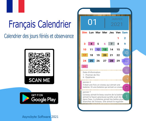 * Français Calendrier avec la fête nationale en 2018, 2019, 2020, 2021