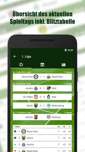 Its like in the stadium! Know immediately when a goal was shot and get push notifications for your favourite team.