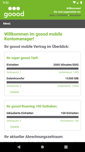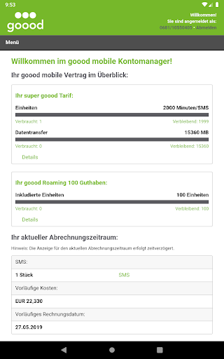 Mit der goood mobile App hast Du alle Informationen zu Deinen Freieinheiten, Kosten und Rechnungen auf einen Blick. Du kannst außerdem die wichtigsten Einstellung ganz bequem selbst vornehmen.