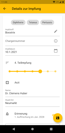 - Automatische Erinnerung nach österreichischem Impfplan