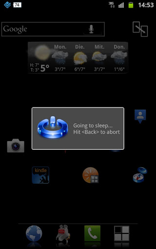 Temporary sets down the screen-timeout to a few seconds so that the device is sent to standby mode without locking it