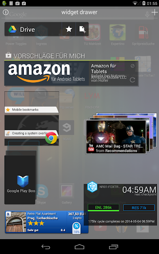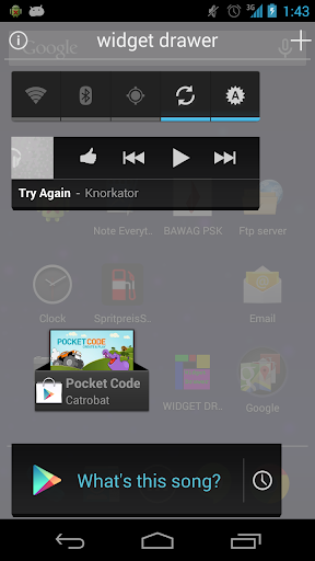 Put your favorite widgets into a full-screen overlay. Don't waste your precious homescreen on widgets. You are supposed to work with your phone, not staring at the homescreen. Have your widgets right there, even if you are busy or gaming. No need to close an app just to use a widget.