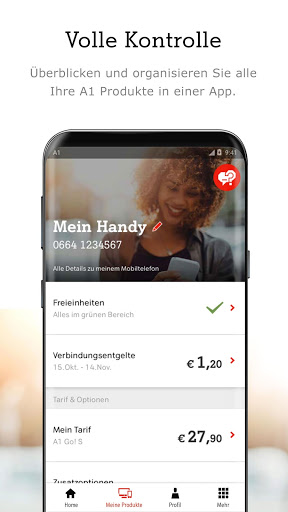 Mit der Mein A1 App behalten Sie den Überblick über Freieinheiten, Kosten und Rechnungen. Egal wo Sie gerade sind.