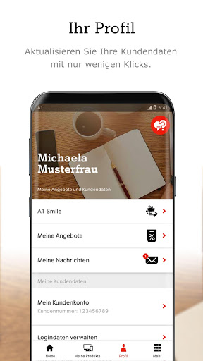 Unter „Profil“ finden Sie wichtige Informationen zu Produktneuheiten, Aktionen und nützlichen Services von A1. Außerdem können Sie hier Ihre Kundendaten ändern.