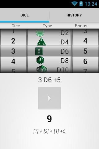 Includes all dice from D2 to D% (D100), a fully customizable dice creator and a history of all your results.