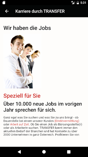 Der TRANSFER Job App ist die offizielle Android Applikation einerseits für die Jobsuche mit integriertem JOB-NEWSLETTER, und andererseits für die Mitarbeiter(innen)suche.