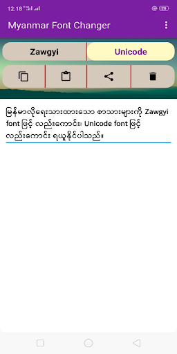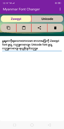 แอปพลิเคชั่นที่เขียนใน Zawgyi Unicode, Unicode,Unicode สามารถเปลี่ยนเป็น zawgyi ได้อย่างง่ายดายแอปพลิเคชันที่เป็นลายลักษณ์อักษรนี้สามารถใช้งานได้ในออฟไลน์คัดลอกวางส่วนแบ่งจะทำง่าย
