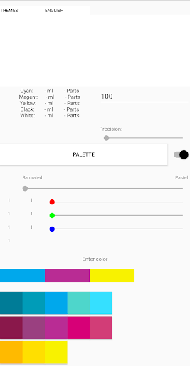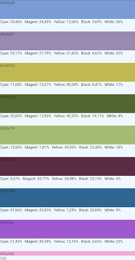 Generate [CMYK and white] standard ink recipes more accurately. This applications can useing in: graphics, tattoos, canvas, professional painting and aothers.