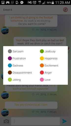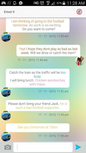Emot it is a free messaging app which allows you to convey emotion in your text through use of colour. Highlight your text with different colors to let others know exactly how you're feeling and end misinterpreted texts forever!