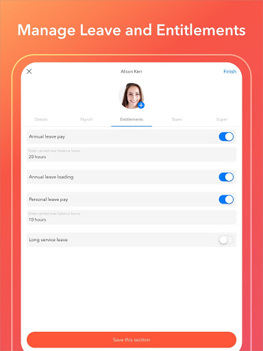 • Track individual employee entitlements – including annual leave, sick leave, personal