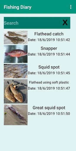 My Fishing Diary allows you to capture images and add text for any location you have fished at. You can add notes to each individual image and use images from your gallery or camera. And setting the exact location is easy with a cross hair target that repositions as you move the map.