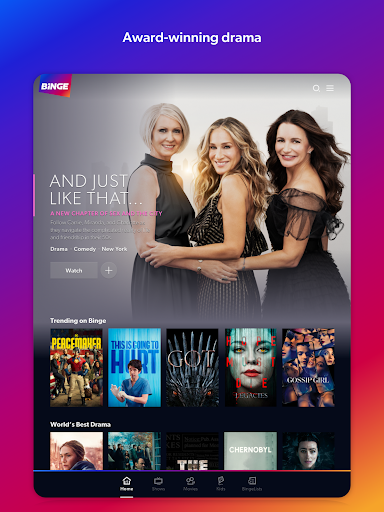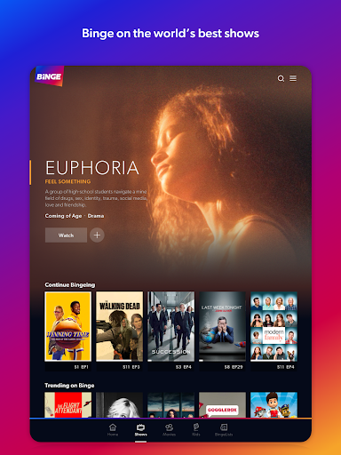 Packed with the world's best TV Shows and Movies, BINGE is Australia’s endlessly entertaining home of everything binge-worthy, award-worthy, share-worthy and all-time-favourite-worthy. Discover the most talked-about TV including Euphoria, Winning Time: The Rise of the Lakers Dynasty, And Just Like That.. or settle in with Modern Family, The Walking Dead and The Sopranos.