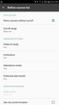 * search by keyword, field of study, university or college, course cut-offs, course name or course code