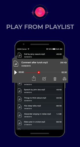 - The voice/sound recorder allows the users to rename and delete voice recordings as per their choice.