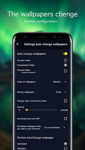 • Automatic background change with the specified interval (live aurora wallpapers)