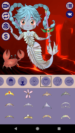 Creating an avatar of the little mermaid will be an exciting process, you can customize the shape of the face with detailed settings of eyes, nose and lips, customize the shape of the hands, tail, hairstyle, clothing, accessories and pet accompanying the mermaid. Create an avatar of a river mermaid, the beauty of the world's oceans, a beautiful mermaid Princess or a brave sea warrior. The choice is yours!