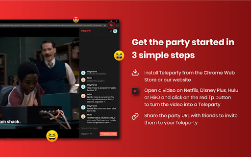 Join more than 10 million people and use Teleparty today to communicate with friends and host long-distance movie nights and watch TV parties!