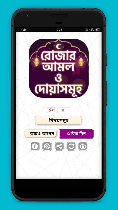 সমগ্র মুসলমান জাতির জন্য সবচেয়ে গুরুত্বপূর্ন হচ্ছে পবিত্র মাহে রমজান।দীর্ঘ এক মাস সিয়াম সাধনার পর আসে আনন্দের ঈদ উল ফিতর। ঈদ নিয়ে আমাদের আনন্দের কোনও শেষ নেই। এই ঈদ কে আমরা পাই কঠিন সাধনার পর। রমজান মাসের গুরুত্ব ও ফজিলত বলে শেষ করার নয়। সবাই আল্লাহ্ কে একান্তে কাছে পাবার আশায় সিয়াম সাধনায় মগ্ন থাকে মাসব্যাপী।মুসলমান হিসেবে আমাদের কি কি বিষয় জেনে রাখতে হবে, নামাজ ,রোজা ,হজ্জ,যাকাত ,কালেমা ইত্যাদি। নামাজ শিক্ষা, আরবি শিক্ষা , দোয়া ও জিকির, পাঁচ ওয়াক্ত নামাজ পড়ার নিয়ম, হাদিসের গল্প, আল্লাহর ৯৯ টি নাম এগুলা আমাদের জানা অত্যাবশ্যক। এগুলা নিয়ে আমরা আগেই আলোচনা করেছি।আজকে তাই আলোচনা করব রোজার আমল নিয়ে।এই ইসলামিক অ্যাপ টি থেকে রোজার নিয়ত ও নিয়ম থেকে শুরু করে ঈদের নামাজ পর্যন্ত আলোচনা করেছি সকল মাসয়ালা সহ।আসুন জেনে নেই কি কি পাচ্ছি অ্যাপ টি থেকেঃরোজার আমল ,রোজার দোয়া নিয়ত ও আমল ,রমজানের প্রয়োজনীয় মাসালা,রমজানের দোয়া ও জিকির,রোজা ভঙ্গের কারন,রোজা সম্পর্কে নানা তথ্য ও মাসাআলা,তারাবির নামাজের নিয়ম,ঈদের নামাজের নিয়ম সহ সেহেরি ও ইফতারের দোয়া ইত্যাদি।