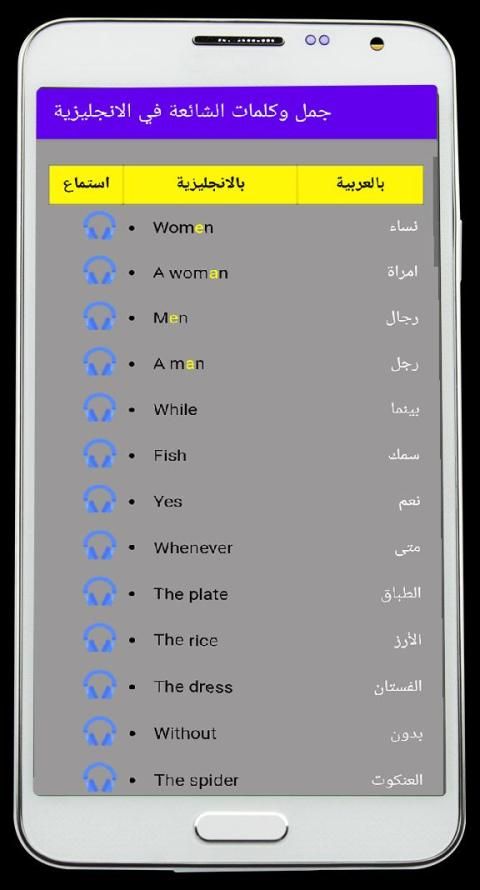 The application is a common phrases and words in English is an application to learn English without the net and is simple for beginners and easy to use,