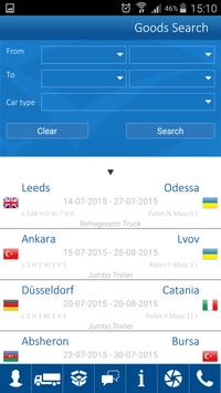 This program works in two modes: search free cars or free goods for transportation. Register as the owner of the goods or the carrier.