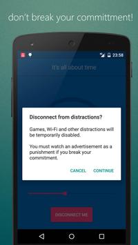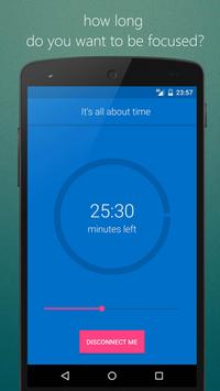 "DisconnectMe" application will allow you to choose a period of time to disconnect yourself from distractions such as Games, Messaging Apps, Social Networks or Wi-Fi in general. You can finally focus on what you have to get done!